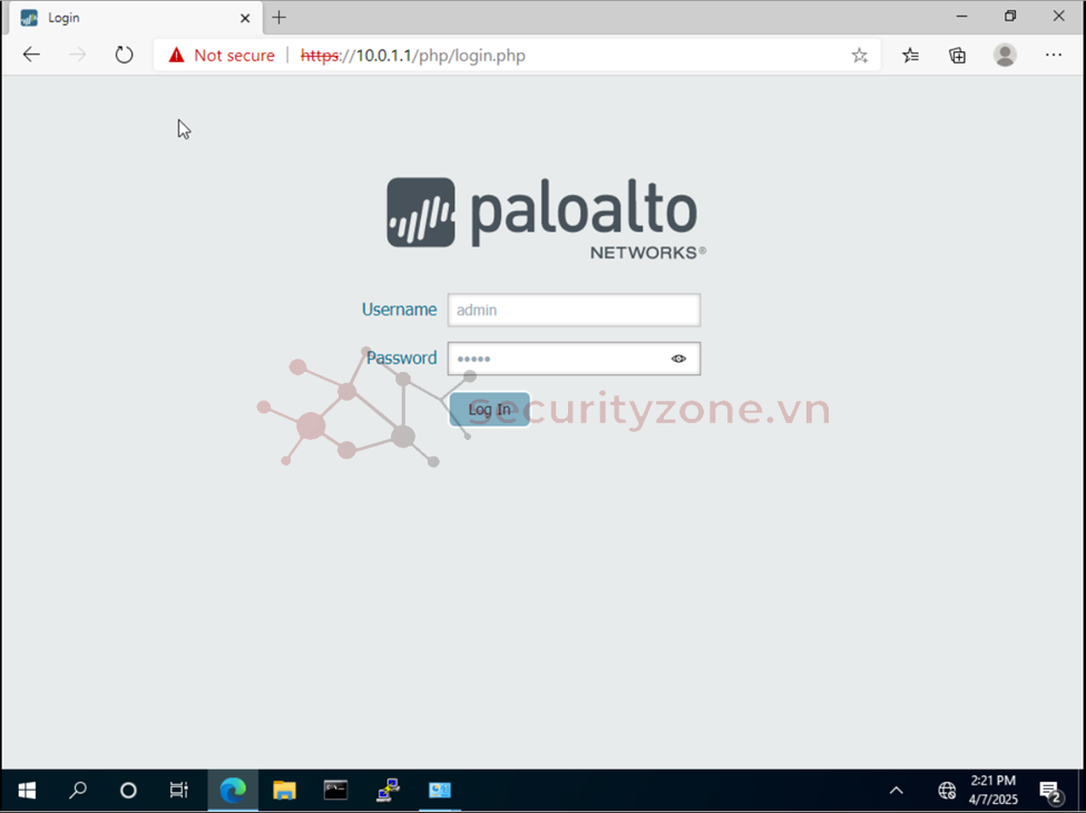 Ta sử dụng trình duyệt, đăng nhập vào giao diện của FW Palo Alto