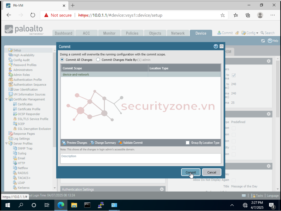 Username/Passwd mặc định của FW Palo Alto là admin/admin