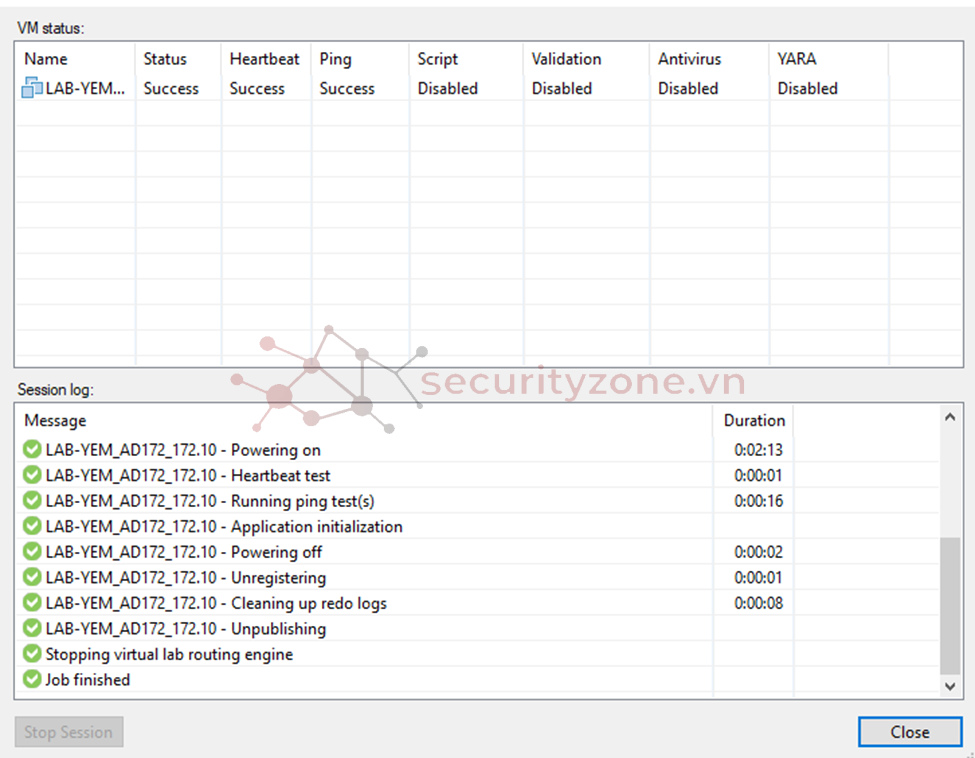 - Lỗi mạng (Network issues): VM không Ping được, test script lỗi do không kết nối được. Kiểm tra lại cấu hình Networking của Virtual Lab, IP Proxy Appliance, Firewall.