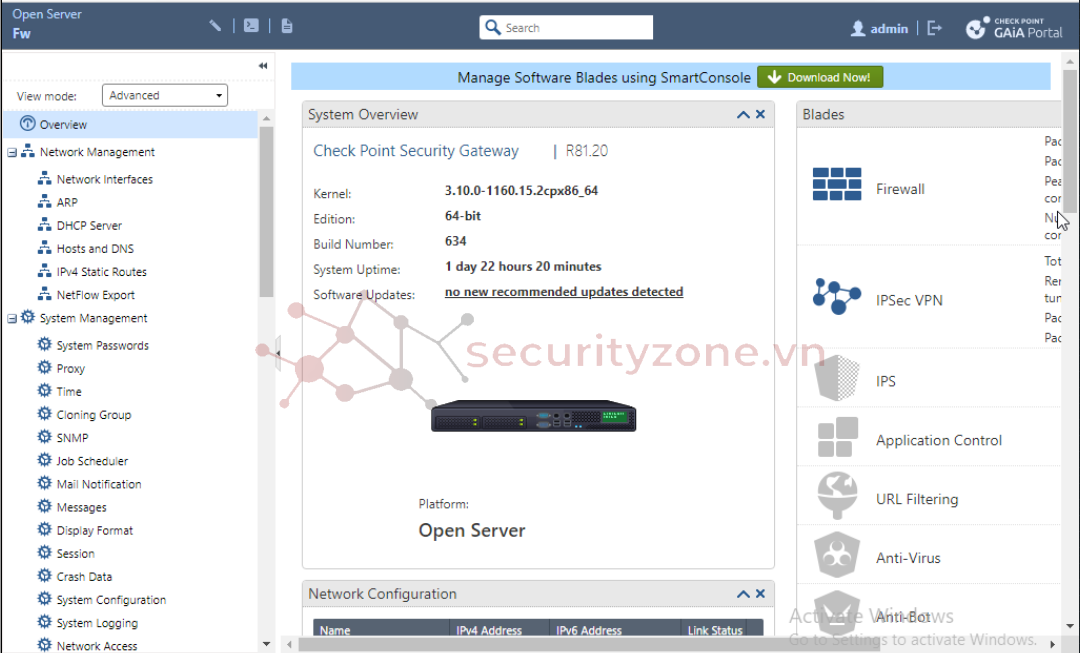Nếu muốn cấu hình sâu hơn (policy, nat, vpn,...) ta cần tải SmartConsole, có thể tải trực tiếp từ GAiA Portal hoặc web chính chủ (đang dùng CP R81.20)